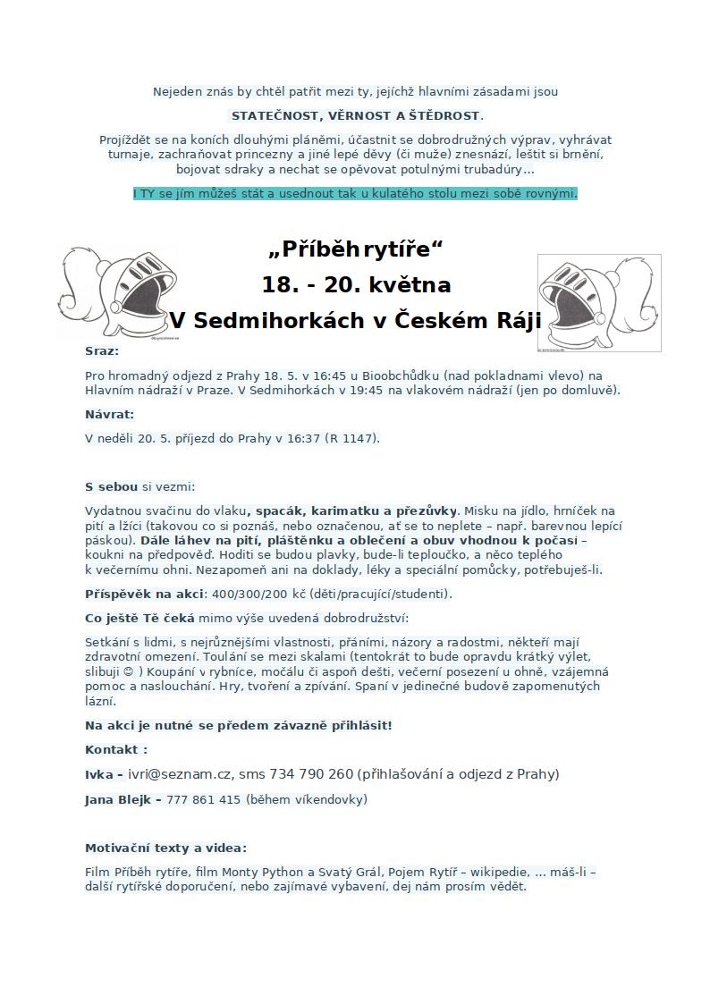 Podrobnosti a pozvánku najdete tady: Příběh rytíře